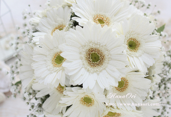 今日は白ガーベラのラウンドブーケのご紹介です。