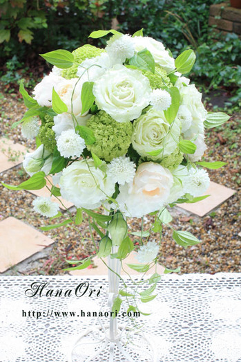 先日お作りした、白バラのブーケのご紹介です。