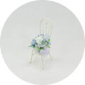小さな白いチェアーがかわいらしいプリザーブドフラワーのアレンジです。明るい淡いブルーでまとめたアレンジは涼しげで、これからの季節にピッタリの色です。